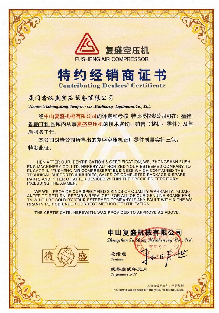 厦门鑫汉盛空压设备有限公司成立于1993年,专业经营复盛牌空压机的销售服务,为复盛公司在福建地区的销售维修服务及租赁中心。专业经营复盛牌各系列空压机;SA系列压缩空气净化系统 ...